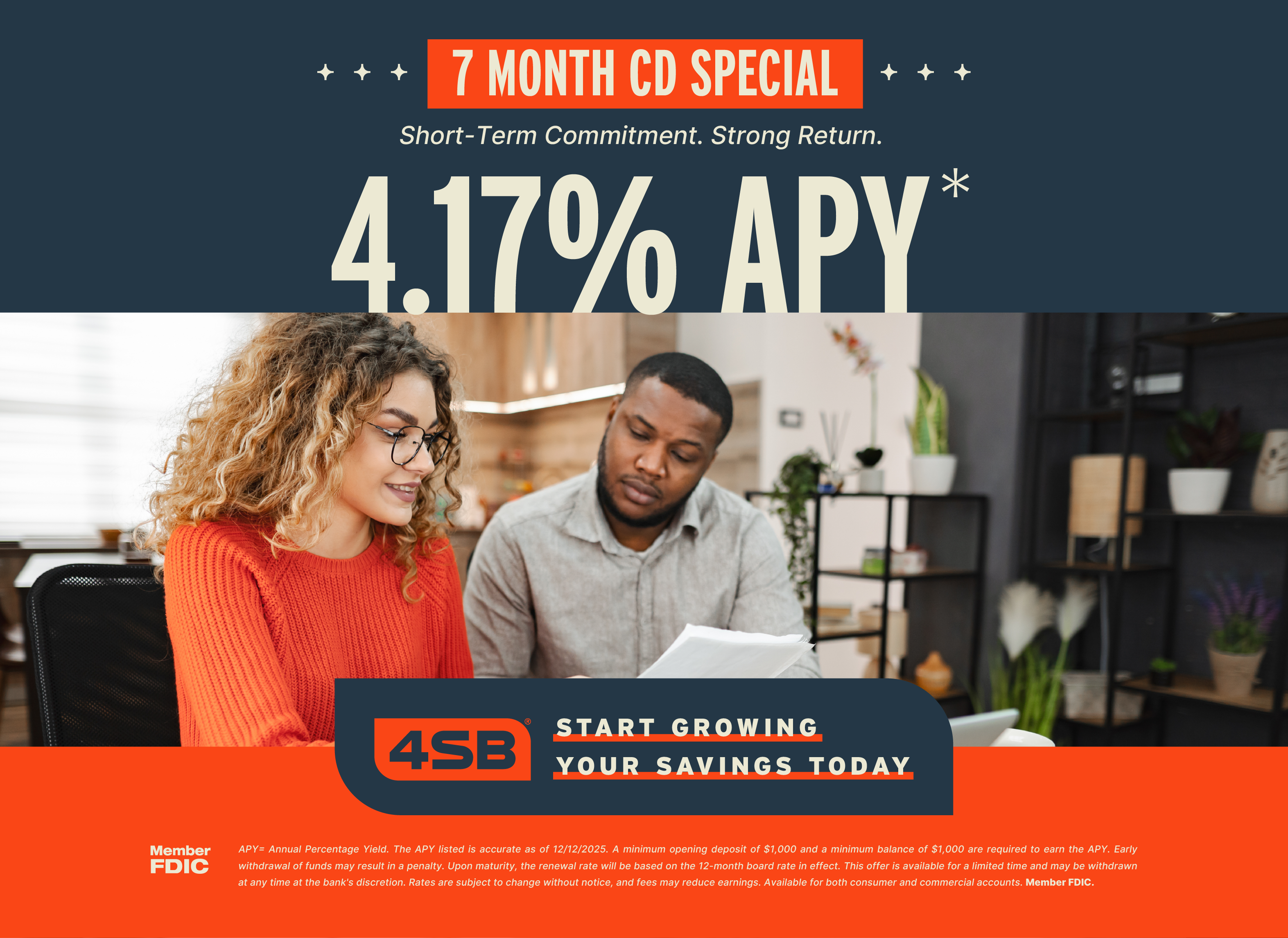 Four States Bank is here to serve you, Your family, and Your business. Our commitment is deep-rooted in the belief that when our clients thrive, the community blossoms. So, let's grow together, building not just wealth, but a legacy of success that will thrive for generations to come.